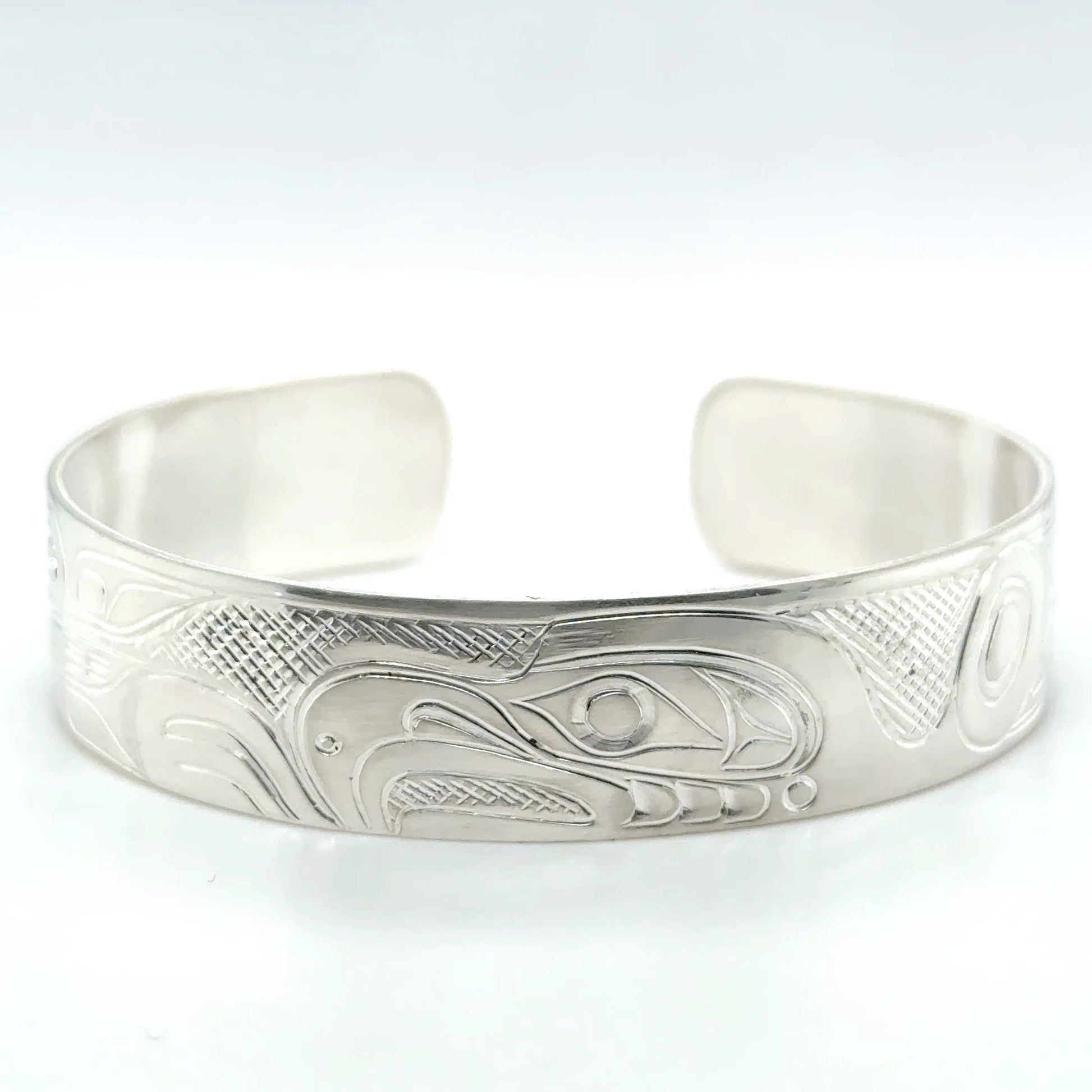 Don Lancaster, born in Alert Bay to a family of gold and silver carvers in 1965, is a renowned Northwest Coast jewellery artist and member of the Kwakwaka’wakw Nation, bearing the family crests of the Sun, Sisiutl (two-headed sea serpent), and the Wolf. An apprentice of celebrated carver Norman Seaweed, he has been carving since 1981 and has been one of the Wickaninnish Gallery’s artists for over 20 years. Many appreciate his work for its simple beauty and clarity of line.