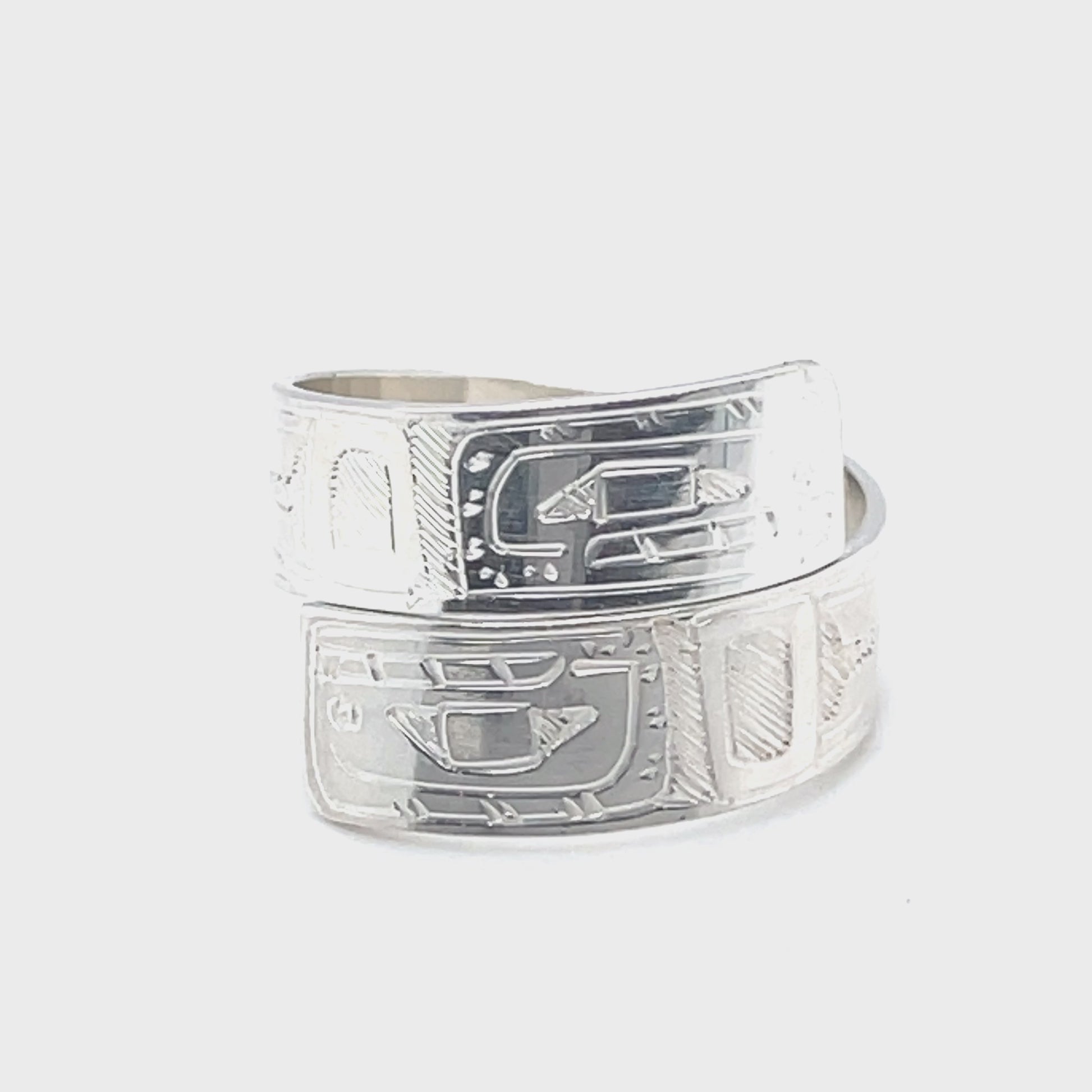 Gilbert Pat, born in Sardis, British Columbia in 1945, is a well-known Northwest Coast jewelry artist of the Coast Salish Nation. After moving to Alert Bay and working as a carpenter and commercial fisherman, he began carving in 1976. He is mainly self-taught, but was mentored by Lloyd Wadhams Sr. of the celebrated Seaweed and Shaughnessy families, from whom he learned to carve with fine detail and high craftsmanship. He works primarily in silver, and his work is widely recognized for its whimsical carvings that incorporate traditional Salish design elements.