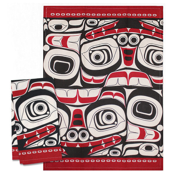 Single tea towel made from natural, non-bleached 100% cotton and printed with water-based, non-toxic inks.