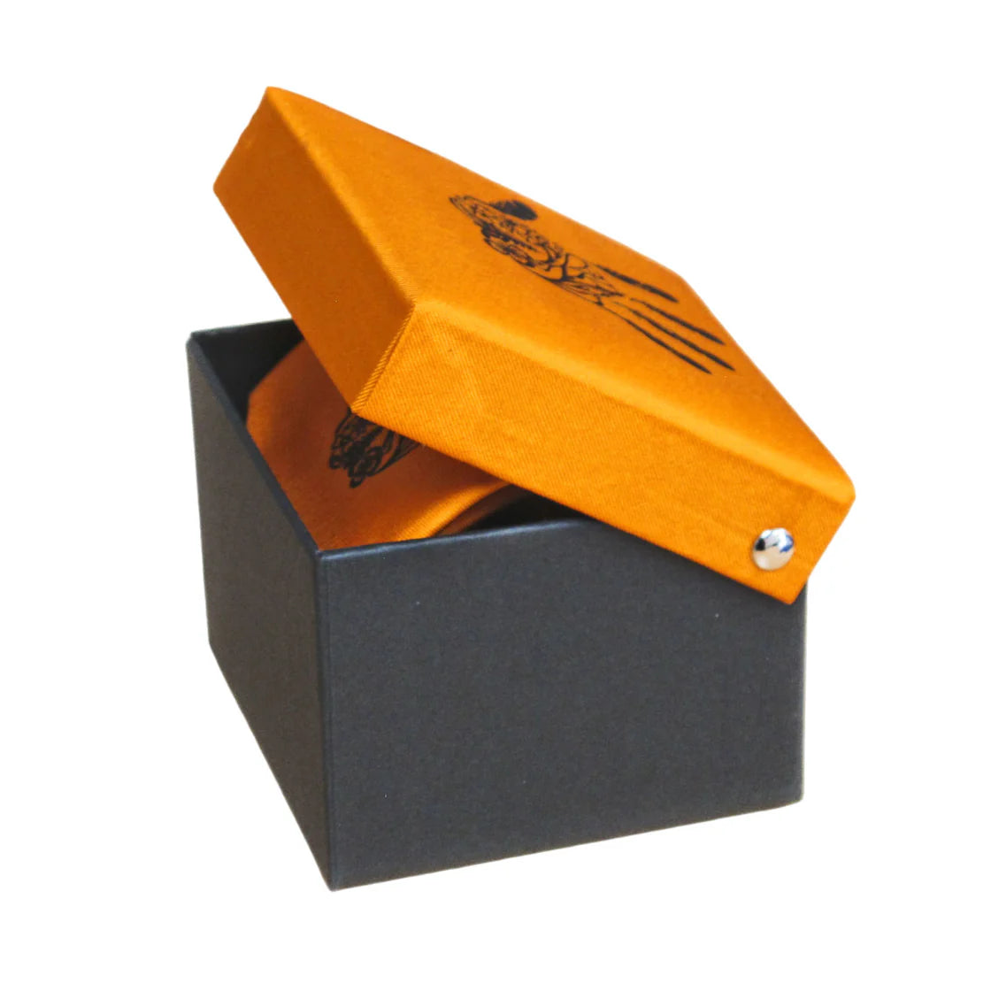 Ties are printed on silk, complemented with the artist's signature on the back, and packaged in an elegant silk-topped box matching the tie's design.Â