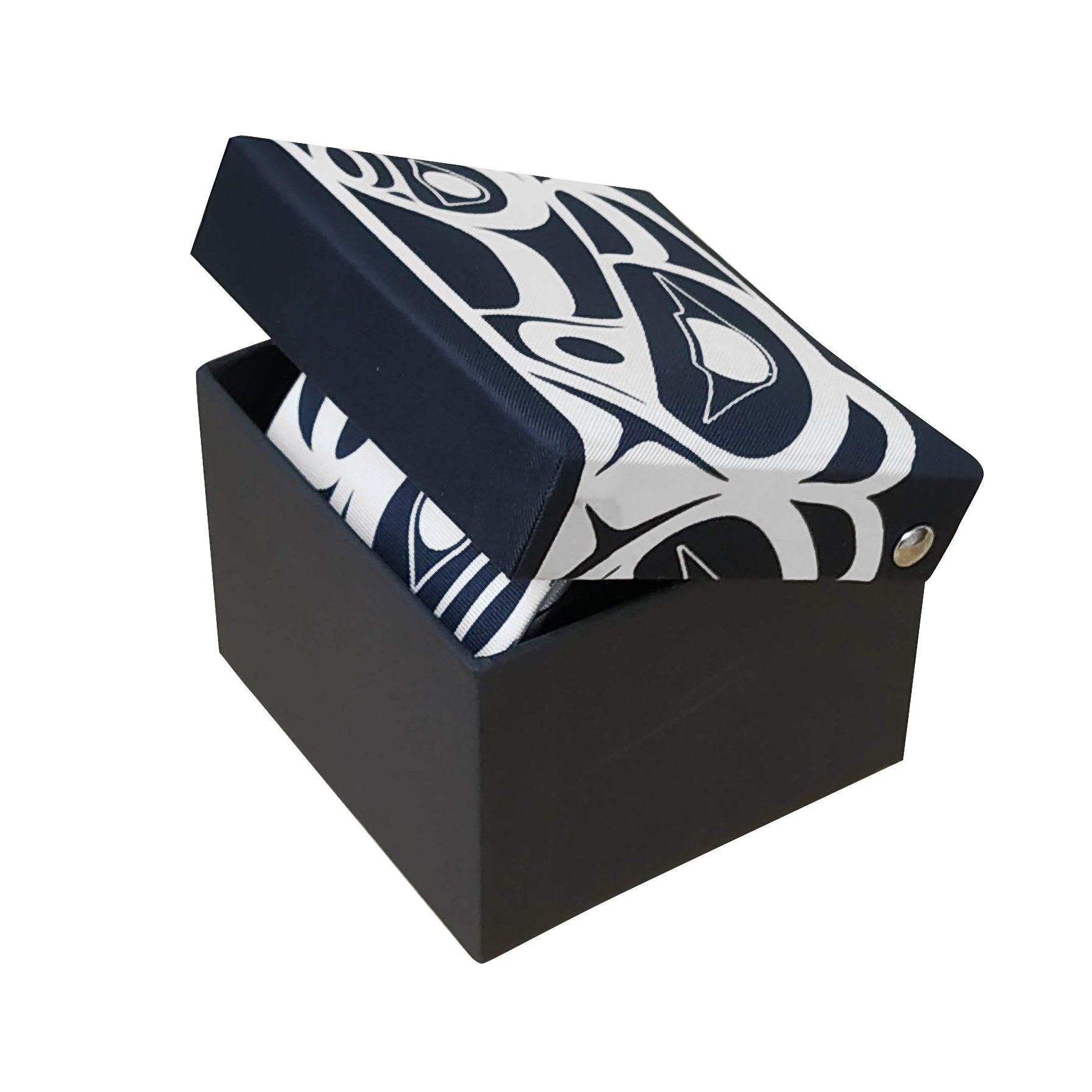 Ties are printed on silk, complemented with the artist's signature on the back, and packaged in an elegant silk-topped box matching the tie's design.