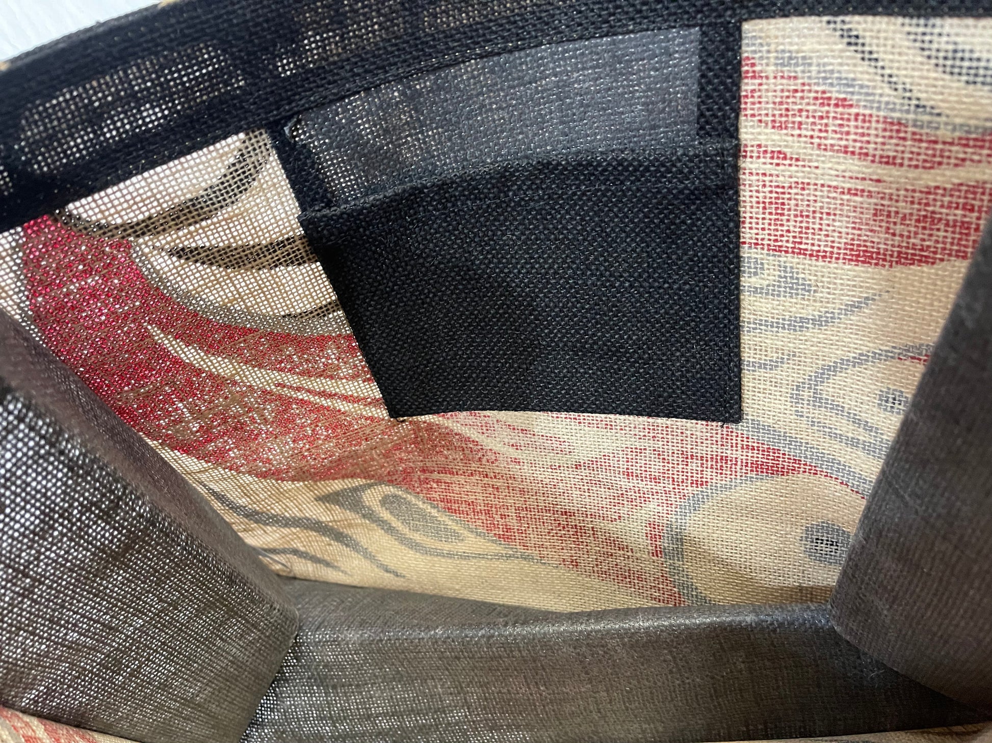 Jute bag with Connie Dickens salmon design. Red