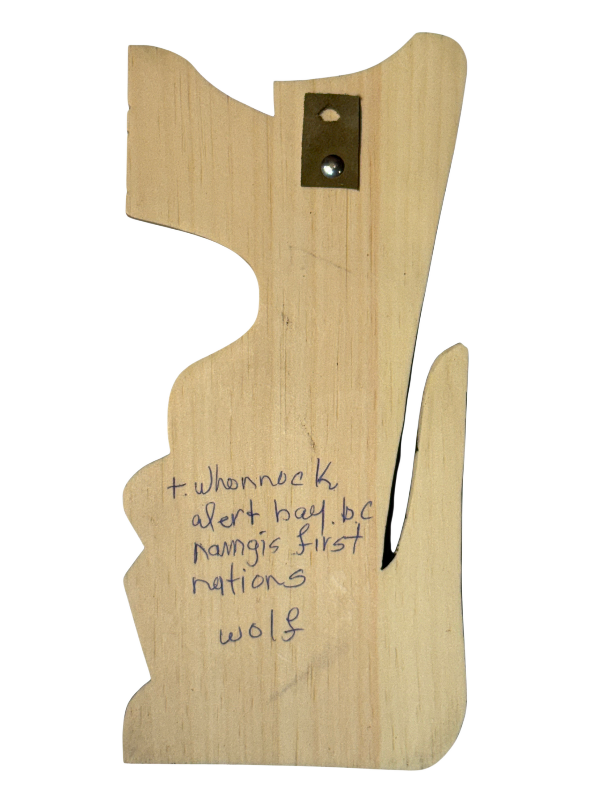 Hand-carved pine plaque by 'Namgis First Nation artist Tom Whonnock of Alert Bay, BC. This piece features a Wolf, symbolizing intelligence, family, loyalty, and leadership.