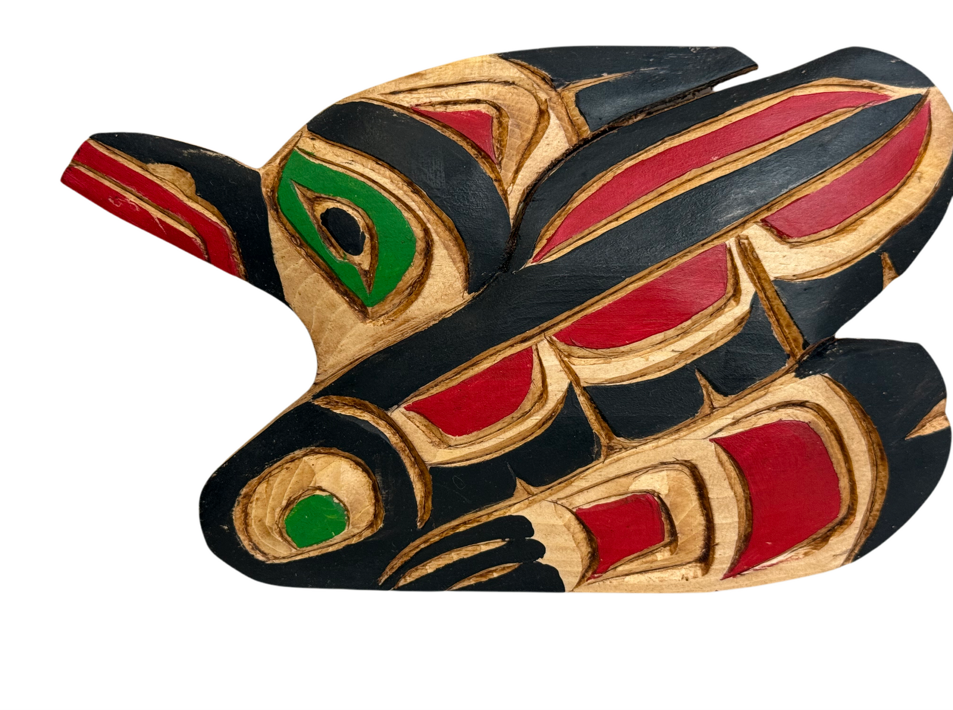 Handcarved pine plaque by Kwakwaka'wakw artist George Matilpi with leather hanger for easy installment.